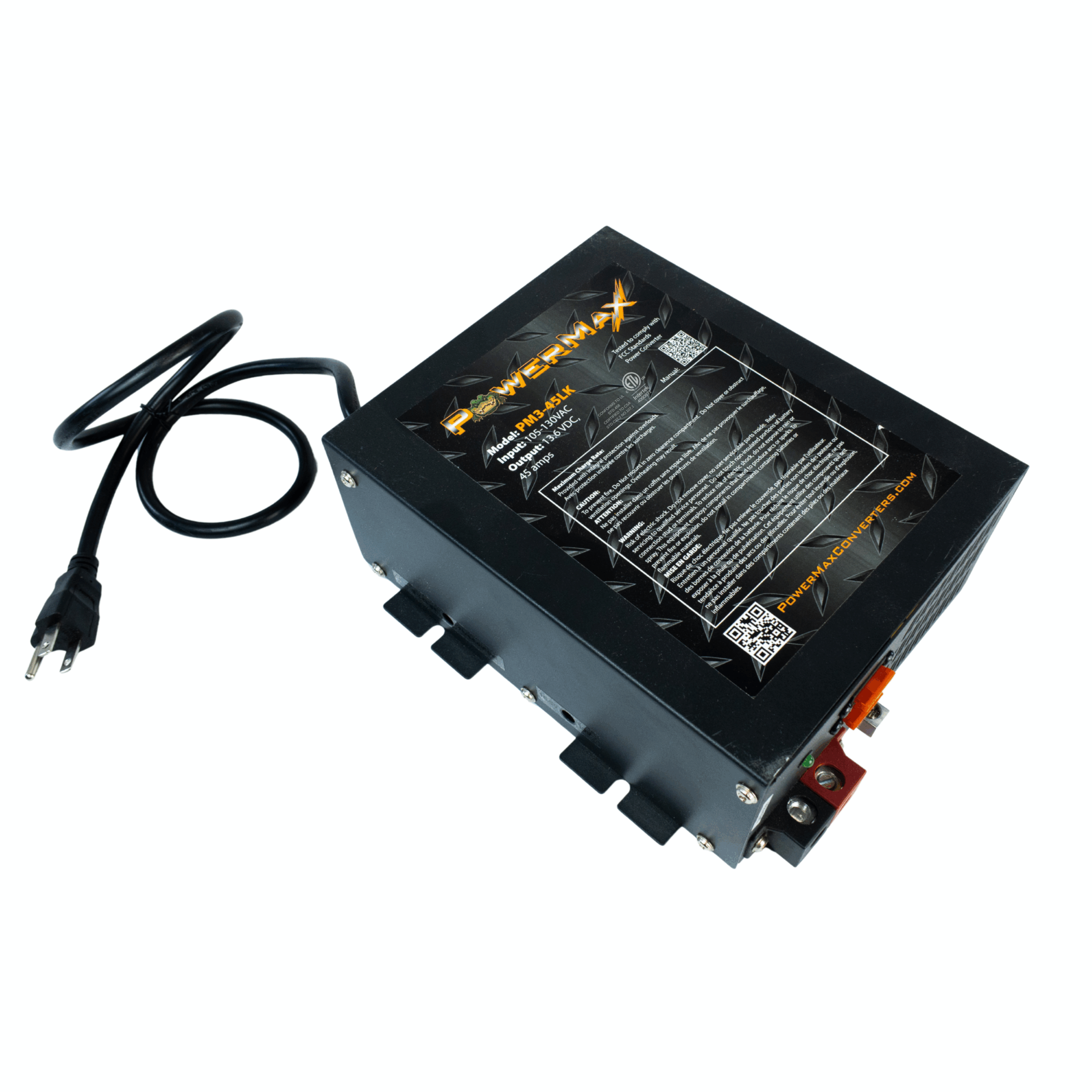 The PowerMax PM3 Series are available in a wide range of amperage sizes and in 12V, 24V and 48V outputs – We also have 220Vac models so we can fit any power requirement. PM3 Series Converters can be wired in Series or Parallel to reach even higher power outputs.